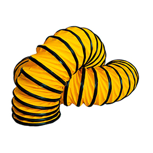 Duto flexível em PVC composto por trama de poliéster + dupla camada de PVC de ambos os lados + estrutura em arame de aço galvanizado espiralado e totalmente revestido.